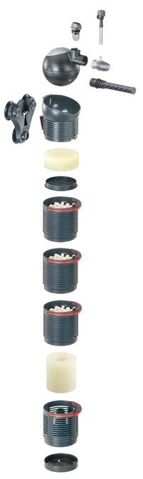 Met Eheim Biopower heeft u een high performance internet filter dat zo efficiënt als een buitenfilter is. Deze pomp beschikt over een all-round draaibare pompenkop, de modulaire opbouw en de verdere functies van een Aquaball filter. Het bijzondere aan een Biopower is het multi-filtersysteem is dat het netzo veel biedt als een buitenfilter. De gesloten filtermanden zijn gevuld met zeer efficiënte filterpatronen (bijvoorbeeld Eheim Substraatpro). De inlaatmand met filterpatroon voor het mechanische biologische voorfiltratie ligt onderop. Het water wordt van onderuit aangezogen en wordt verder naar boven gepompt waar het water door de verschillende filters komt.